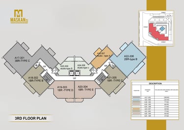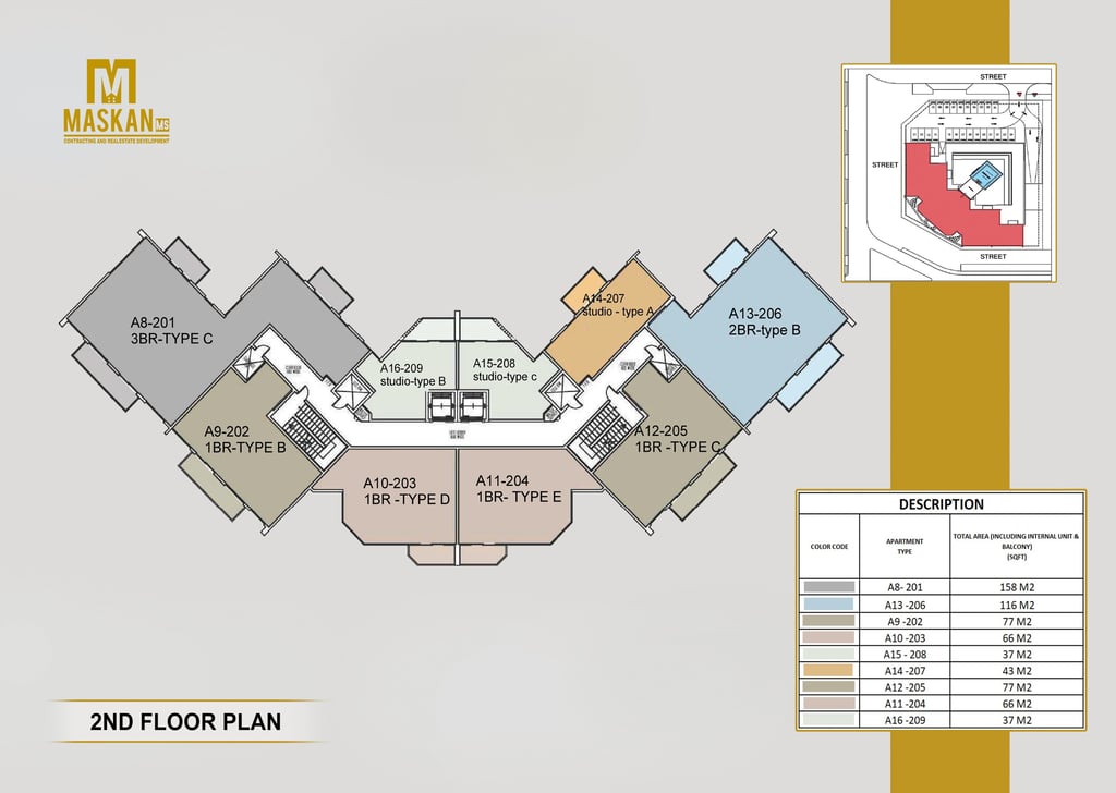 Each of the upper five floors features 9 well-designed units, offering a perfect blend of modern living spaces for singles and families alike.